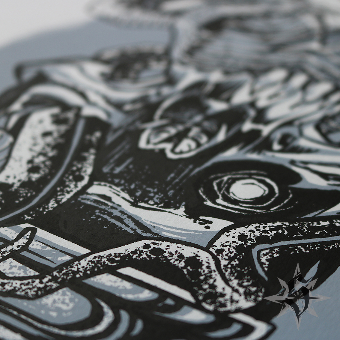 Depuis quelques mois j’apprends la sérigraphie auprès du copain David TAMAM . Celle ci, titrée « DEATH GRAAL », a été imprimée en octobre 2022 et m’a donné du fil à retordre ! Sur 50 tirages je n’en ai conservé que 16 qui étaient d’une qualité suffisante pour être vendables. Il y a aussi eu 8 exemplaires « hors-série » […]