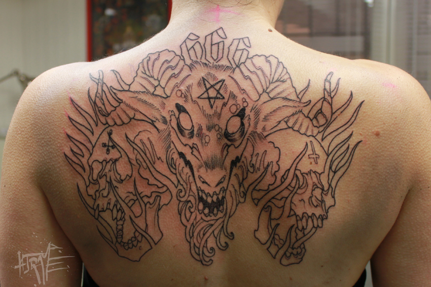 Première séance (sur deux de prévues) pour un haut de dos bien black metal (réalisé chez Concarn’Ink à Concarneau). Du coup un petit morceau de Dying Fetus (« Skull fucked » sur l’album « Purification through violence« ) pour illustrer ça de façon sonore (voir post précédent).