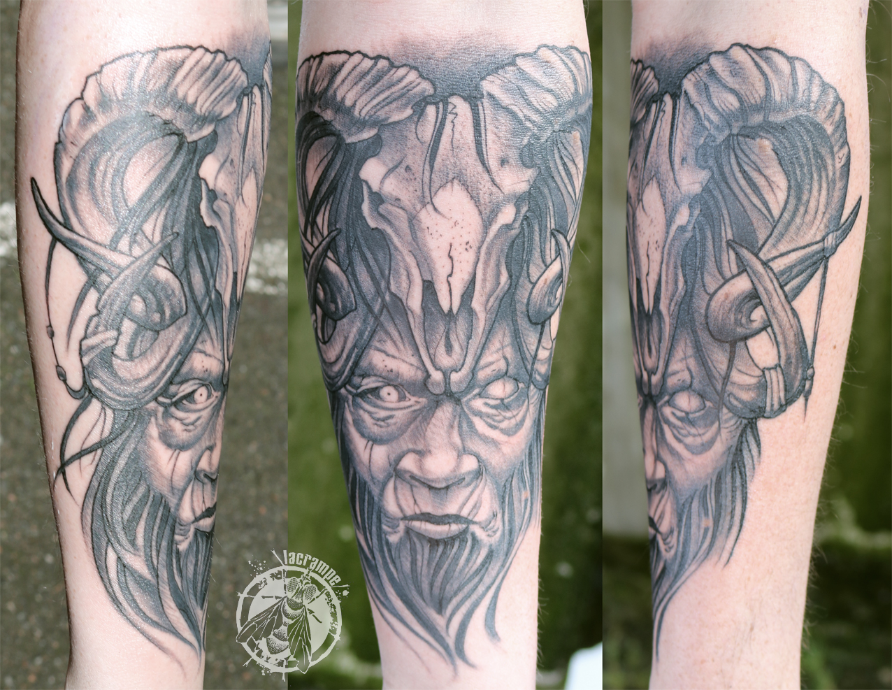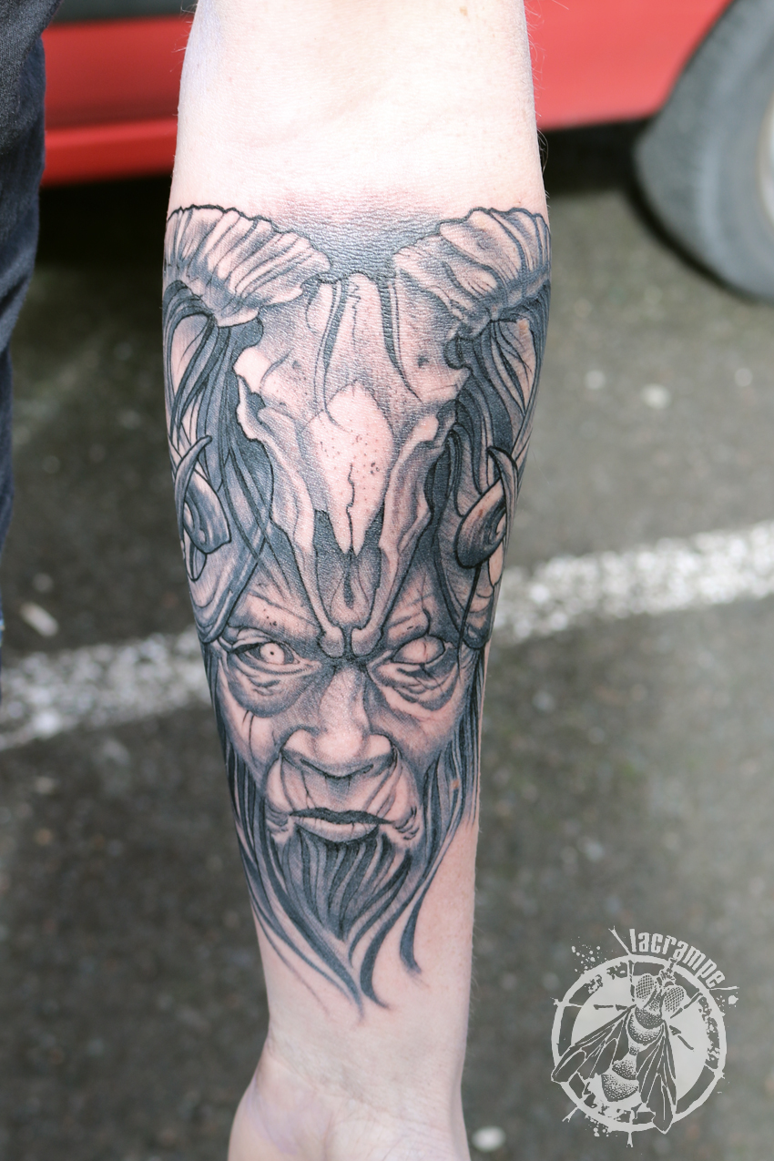 Le « Black Shaman » de Julien, encré le samedi après midi sur environ 4h30/5h. Et un 2d prix « Best of Show ».